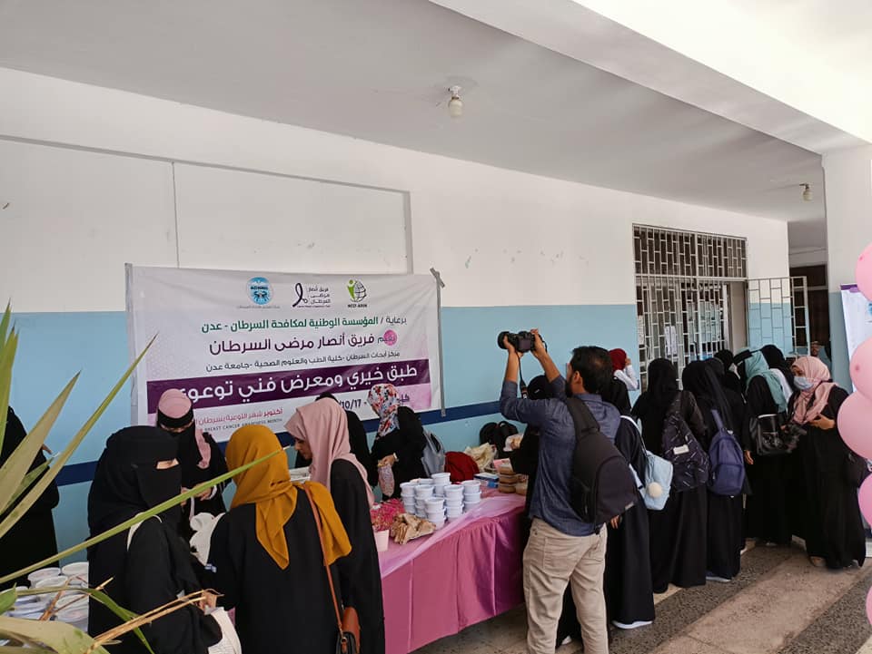 تزامنًا مع الشهر العالمي لمكافحة السرطان.. طبق خيري ومعرض توعوي بكلية الطب بعدن لصالح مرضى السرطان